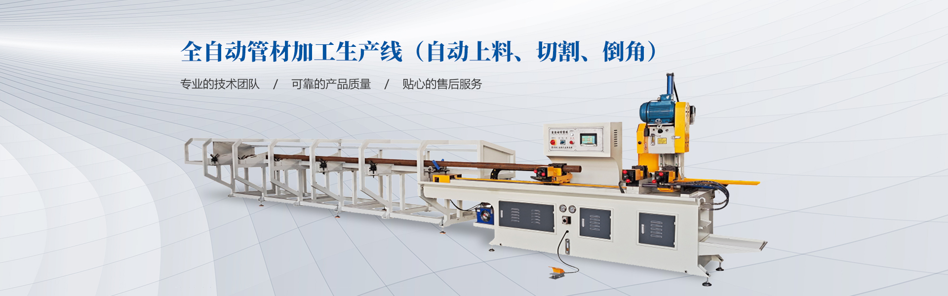 我公司具備雄厚的設(shè)計(jì)研發(fā)能力,先后研制開(kāi)發(fā)了CNC數(shù)控彎管機(jī),CNC數(shù)控管端成型機(jī),CNC數(shù)控金屬圓鋸機(jī),單頭/雙頭倒角機(jī),CNC數(shù)控磨齒機(jī)等自動(dòng)化管材加工機(jī)械及生產(chǎn)線。為航空航天、重工工程機(jī)械、核能核電、風(fēng)能熱電、造船游艇、汽車(chē)零部件、機(jī)動(dòng)車(chē)車(chē)架、空調(diào)制冷、體育健身器材、鋼管家具、旅游休閑用品、水暖衛(wèi)浴、裝飾用材等行業(yè)的金屬管類(lèi)制品的加工提供了成套,完美的自動(dòng)化設(shè)備。公司可根據(jù)客戶需求設(shè)計(jì),制造特殊規(guī)格的無(wú)人智能自動(dòng)化機(jī)型以及各種非標(biāo)機(jī)械設(shè)備。